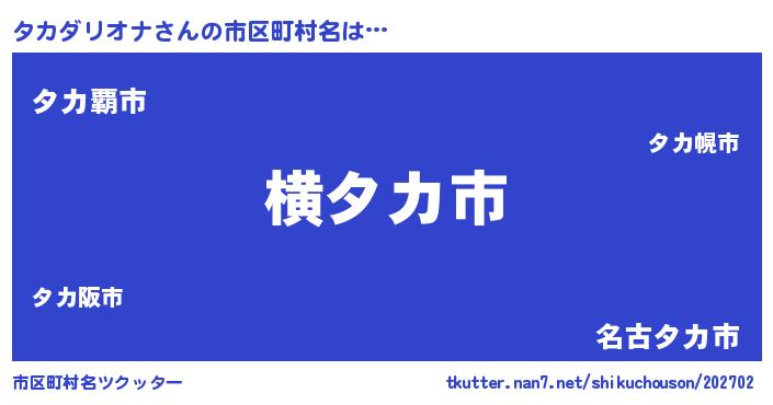| 意味不明あだ名 | 『自称タカダリオナ』 |