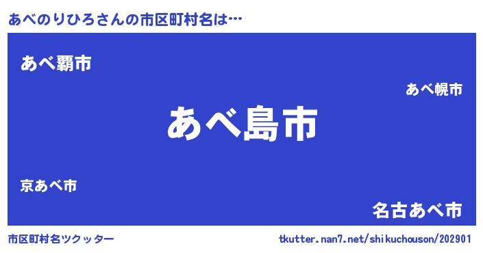 | 男性向けラノベタイトル風あだ名 | 『ノーゲーム・ノーアベノリヒロ』 |