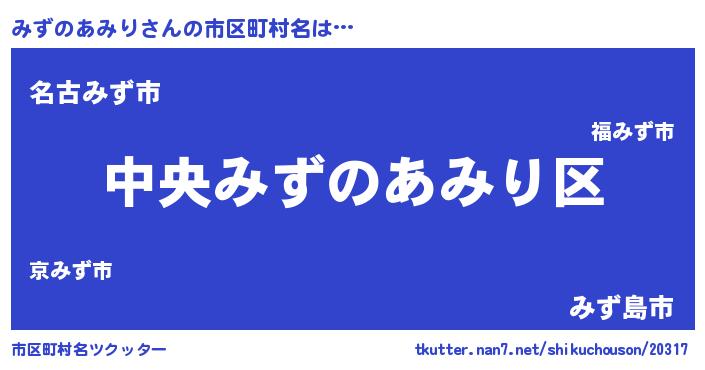 | 男性向けラノベタイトル風あだ名 | 『みずのあみりの憂鬱』 |