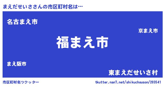 | 男性向けラノベタイトル風あだ名 | 『まえだせいさ~年齢イコール彼女いない歴の魔法使い~』 |