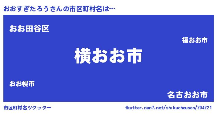 | 男性向けラノベタイトル風あだ名 | 『魔法科高校のおおすぎたろう』 |