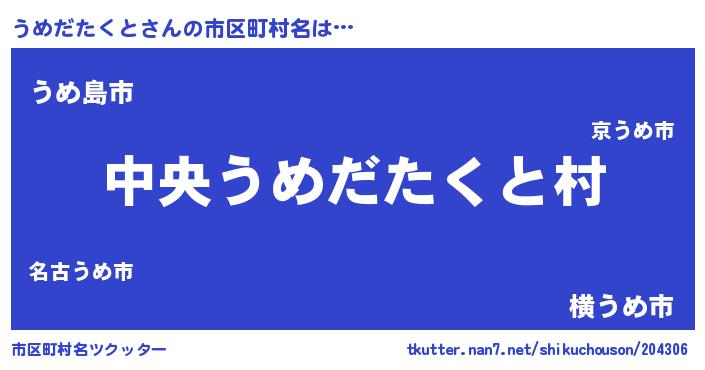 | 男性向けラノベタイトル風あだ名 | 『うめだたくとの憂鬱』 |