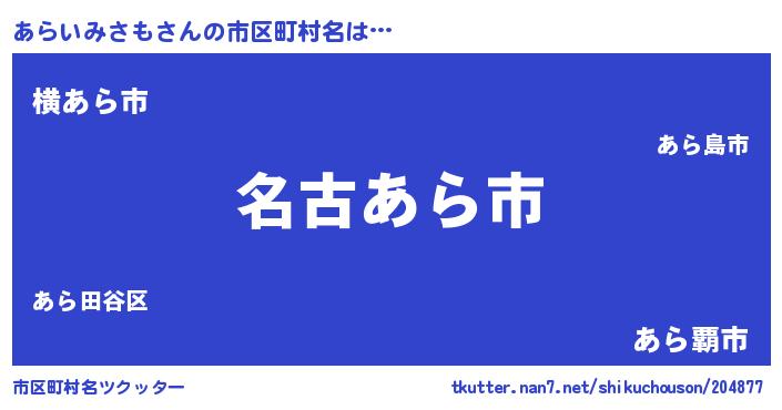 | ヘコむあだ名 | 『あらいみさも(苦笑)』『あらっ子』 |