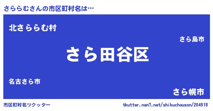 | 肩書あだ名 | 『さららむ船長』『さららむ社長』 |