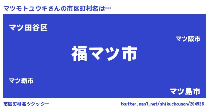 | 男性向けラノベタイトル風あだ名 | 『マツモトユウキスレイヤー』 |