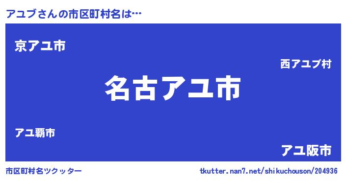 | 意味不明あだ名 | 『住所不定無職アユブ(56歳)』 |