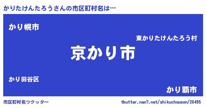 | 意味不明あだ名 | 『住所不定無職かりたけんたろう(95歳)』 |