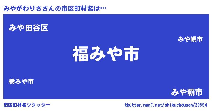 | 男性向けラノベタイトル風あだ名 | 『転生したらみやがわりさだった件』 |
