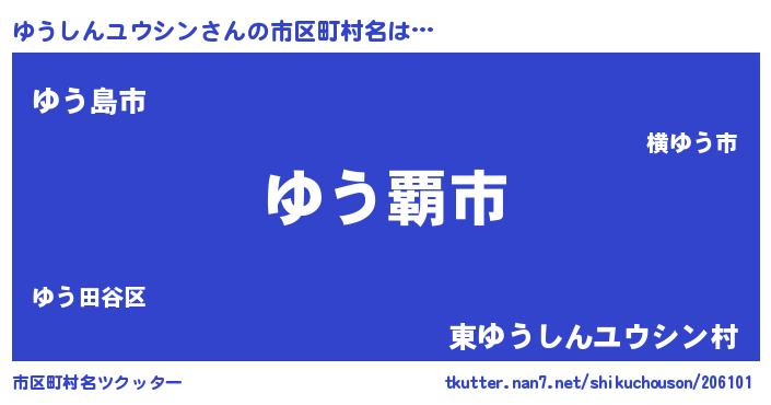 | 男性向けラノベタイトル風あだ名 | 『ゆうしんユウシンという概念が存在しない退屈な世界 』 |