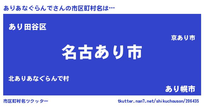 | 男性向けラノベタイトル風あだ名 | 『ありあなぐらんでに滅ぼされるだけの簡単なお仕事です』 |
