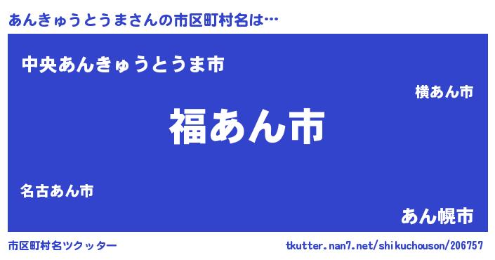 | 男性向けラノベタイトル風あだ名 | 『転生したらあんきゅうとうまだった件』 |