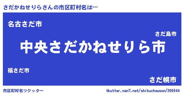 男性向けラノベタイトル風あだ名 | 『さだかねせりらの憂鬱』 |