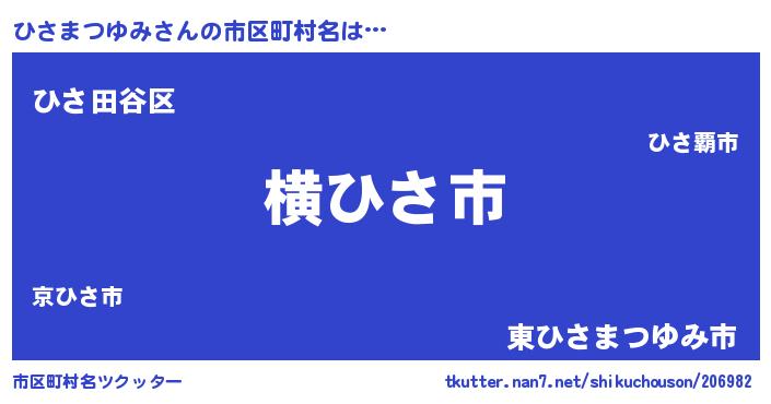 | 男性向けラノベタイトル風あだ名 | 『Re:ひさまつゆみから始める異世界生活』 |