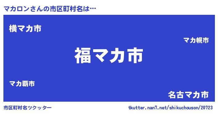 | 男性向けラノベタイトル風あだ名 | 『マカロン~年齢イコール彼女いない歴の魔法使い~』 |