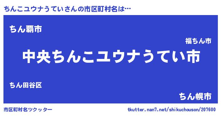 | 男性向けラノベタイトル風あだ名 | 『ちんこユウナうていの憂鬱』 |