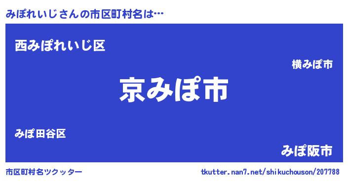 | 意味不明あだ名 | 『住所不定無職みぽれいじ(68歳)』 |