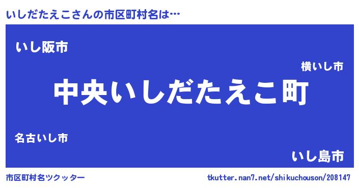 | ヒーロー風カッコイイあだ名 | 『スーパーイシダタエコ』『天弓騎士イシ』 |