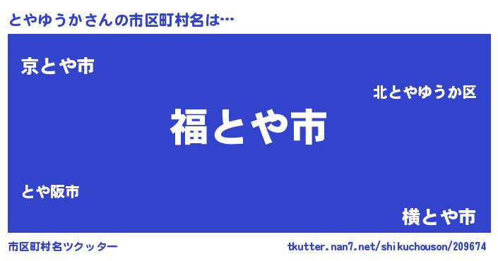 | 男性向けラノベタイトル風あだ名 | 『とやゆうか~年齢イコール彼女いない歴の魔法使い~』 |