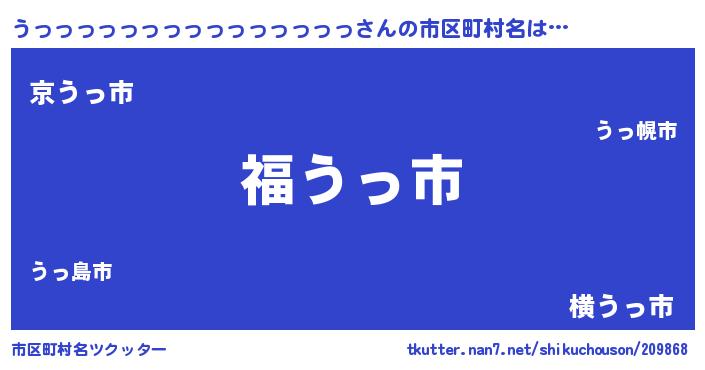 | 男性向けラノベタイトル風あだ名 | 『うっっっっっっっっっっっっっっっ~年齢イコール彼女いない歴の魔法使い~』 |