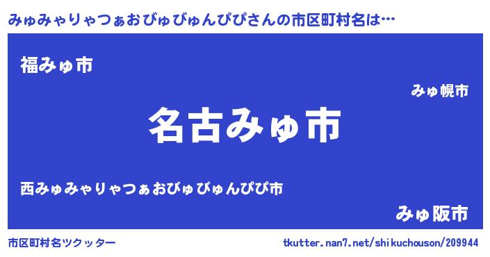 | 男性向けラノベタイトル風あだ名 | 『みゅみゃりゃつぁおびゅびゅんぴぴに滅ぼされるだけの簡単なお仕事です』 |