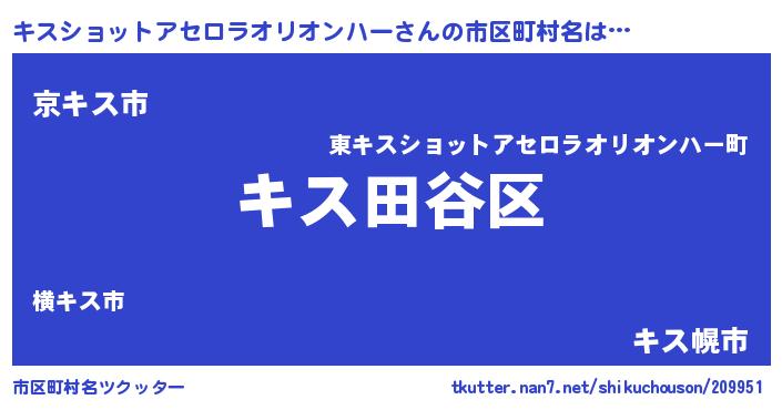 | 意味不明あだ名 | 『住所不定無職キスショットアセロラオリオンハー(6歳)』 |