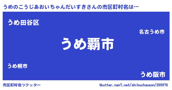 | ヒーロー風カッコイイあだ名 | 『ネオウメノコウジアオイチャンダイスキ』 |