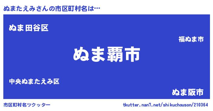 | 意味不明あだ名 | 『永久保存ぬまたえみ』 |
