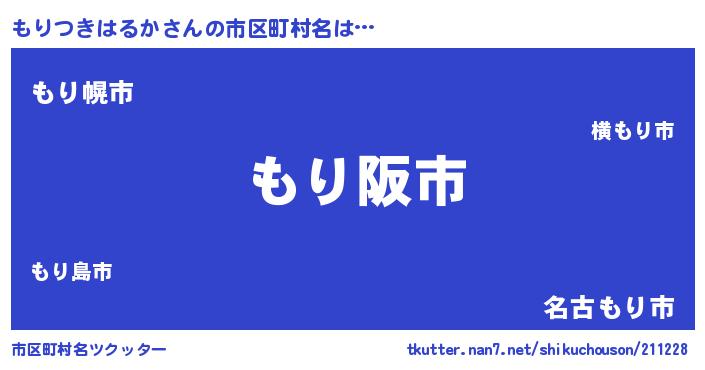 | 男性向けラノベタイトル風あだ名 | 『もりつきはるかの嫁は女の子じゃないと思った?』 |