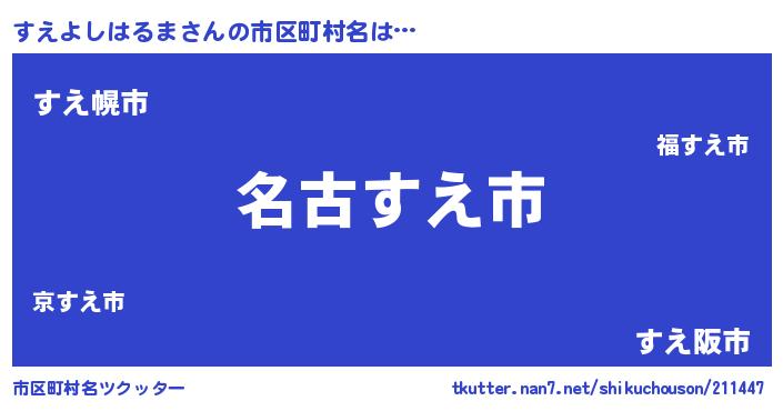 | 男性向けラノベタイトル風あだ名 | 『すえよしはるまに滅ぼされるだけの簡単なお仕事です』 |