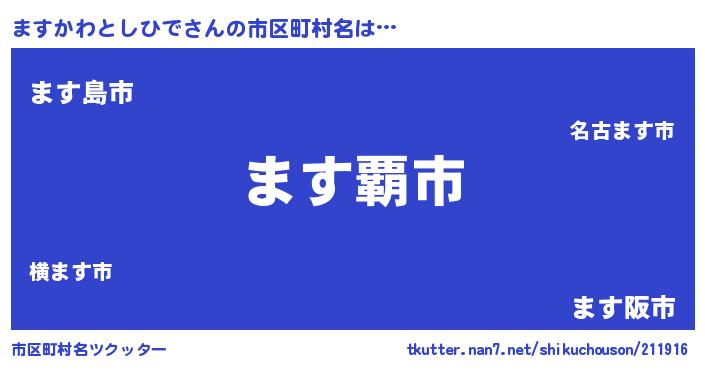 | 男性向けラノベタイトル風あだ名 | 『ますかわとしひでという概念が存在しない退屈な世界 』 |
