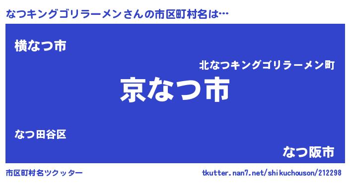 | 意味不明あだ名 | 『住所不定無職なつキングゴリラーメン(65歳)』 |