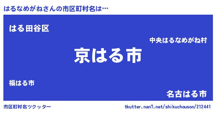 | 意味不明あだ名 | 『住所不定無職はるなめがね(74歳)』 |