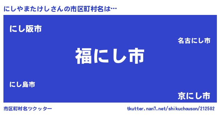 | 男性向けラノベタイトル風あだ名 | 『転生したらにしやまたけしだった件』 |