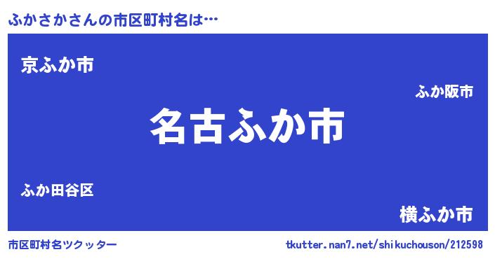 | 男性向けラノベタイトル風あだ名 | 『ふかさかに滅ぼされるだけの簡単なお仕事です』 |