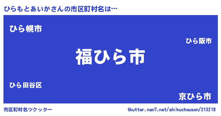 | 男性向けラノベタイトル風あだ名 | 『ひらもとあいか~年齢イコール彼女いない歴の魔法使い~』 |
