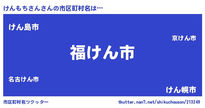 | 男性向けラノベタイトル風あだ名 | 『転生したらけんもちさんだった件』 |