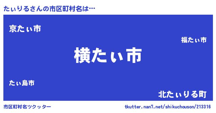 | 男性向けラノベタイトル風あだ名 | 『Re:たぃりるから始める異世界生活』 |