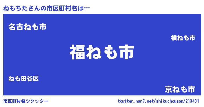 | 男性向けラノベタイトル風あだ名 | 『ねもちた~年齢イコール彼女いない歴の魔法使い~』 |