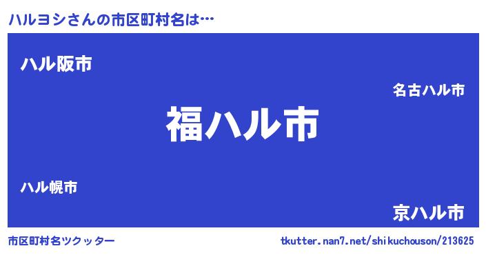 | 男性向けラノベタイトル風あだ名 | 『転生したらハルヨシだった件』 |