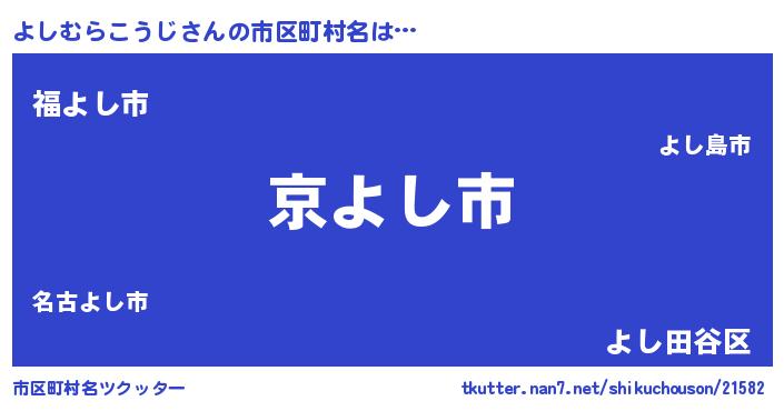 | 男性向けラノベタイトル風あだ名 | 『魔弾の王とよしむらこうじ』 |