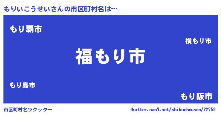 | 男性向けラノベタイトル風あだ名 | 『もりいこうせい~年齢イコール彼女いない歴の魔法使い~』 |