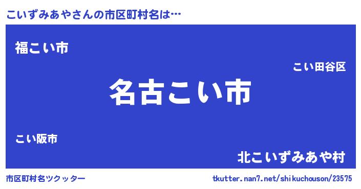 | 男性向けラノベタイトル風あだ名 | 『こいずみあやに滅ぼされるだけの簡単なお仕事です』 |