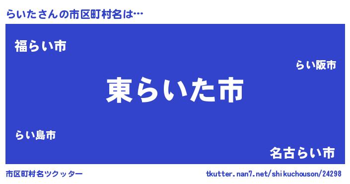 | 男性向けラノベタイトル風あだ名 | 『らいたの憂鬱』 |