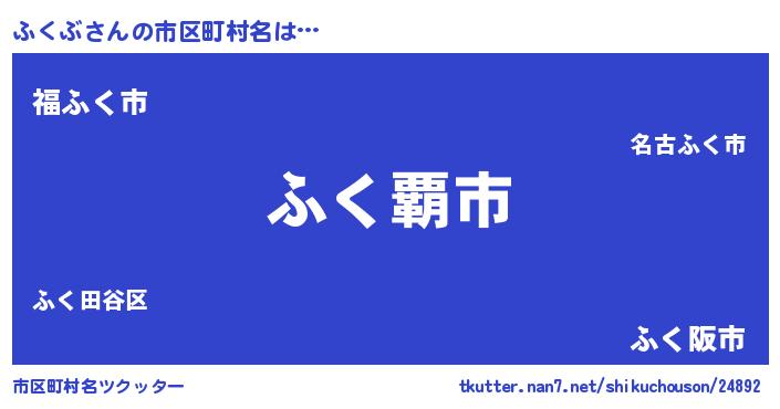 ふくぶさんの市区町村名は… 『ふく覇市』『福ふく市』『ふく阪市』 ツクッター #市区町村名ツクッター http://tkutter.nan7.net/shikuchouson/24892/