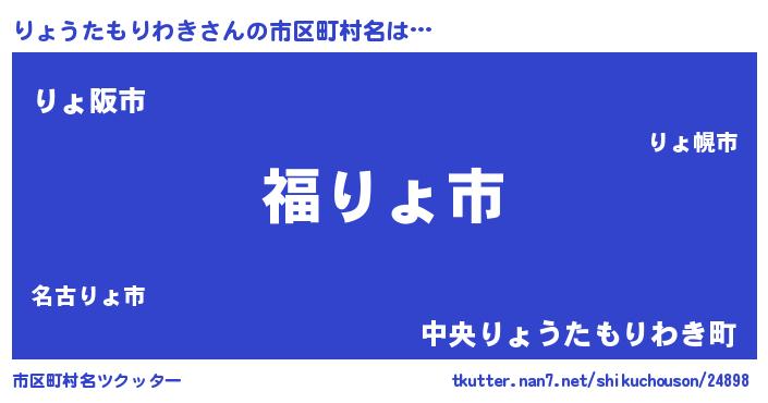 | 男性向けラノベタイトル風あだ名 | 『りょうたもりわき~年齢イコール彼女いない歴の魔法使い~』 |