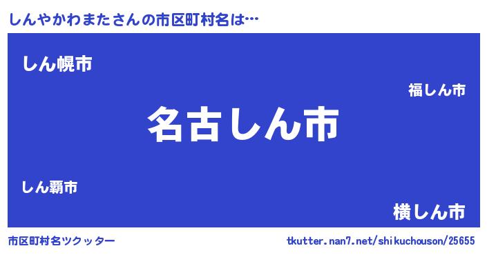 | 男性向けラノベタイトル風あだ名 | 『しんやかわまたに滅ぼされるだけの簡単なお仕事です』 |