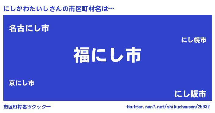 | 肩書あだ名 | 『にしかわたいし大将』 |