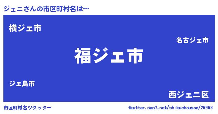 | 男性向けラノベタイトル風あだ名 | 『ジェニスレイヤー』『ジェニの憂鬱』 |