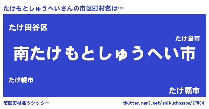 | ヘコむあだ名 | 『たけもー』『たけもとしゅうへい(震え声)』 |