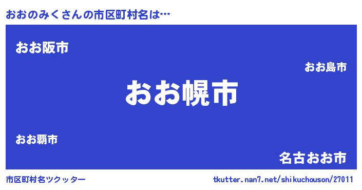 おおのみくさんの市区町村名は… 『おお幌市』『おお阪市』『名古おお市』 ツクッター #市区町村名ツクッター http://tkutter.nan7.net/shikuchouson/27011/